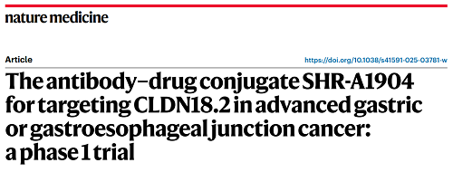 尊龙凯时医药CLDN18.2 ADC创新药SHR-A1904治疗胃癌临床研究结果荣登Nature Medicine
